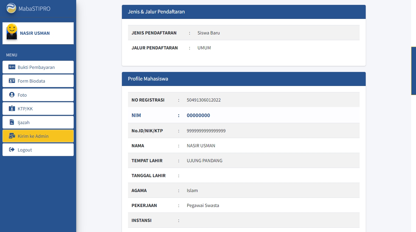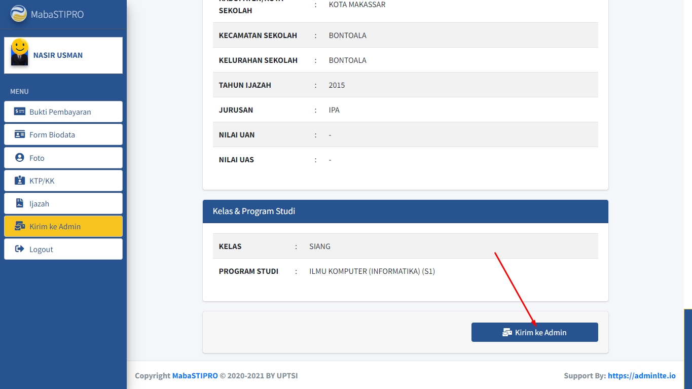 Jika sudah yakin bahwa tidak ada lagi yang perlu diubah, klik tombol Kirim ke Admin Tunggu sampai muncul halaman yang menyatakan bahwa data Anda berhasil dikirim ke Admin.