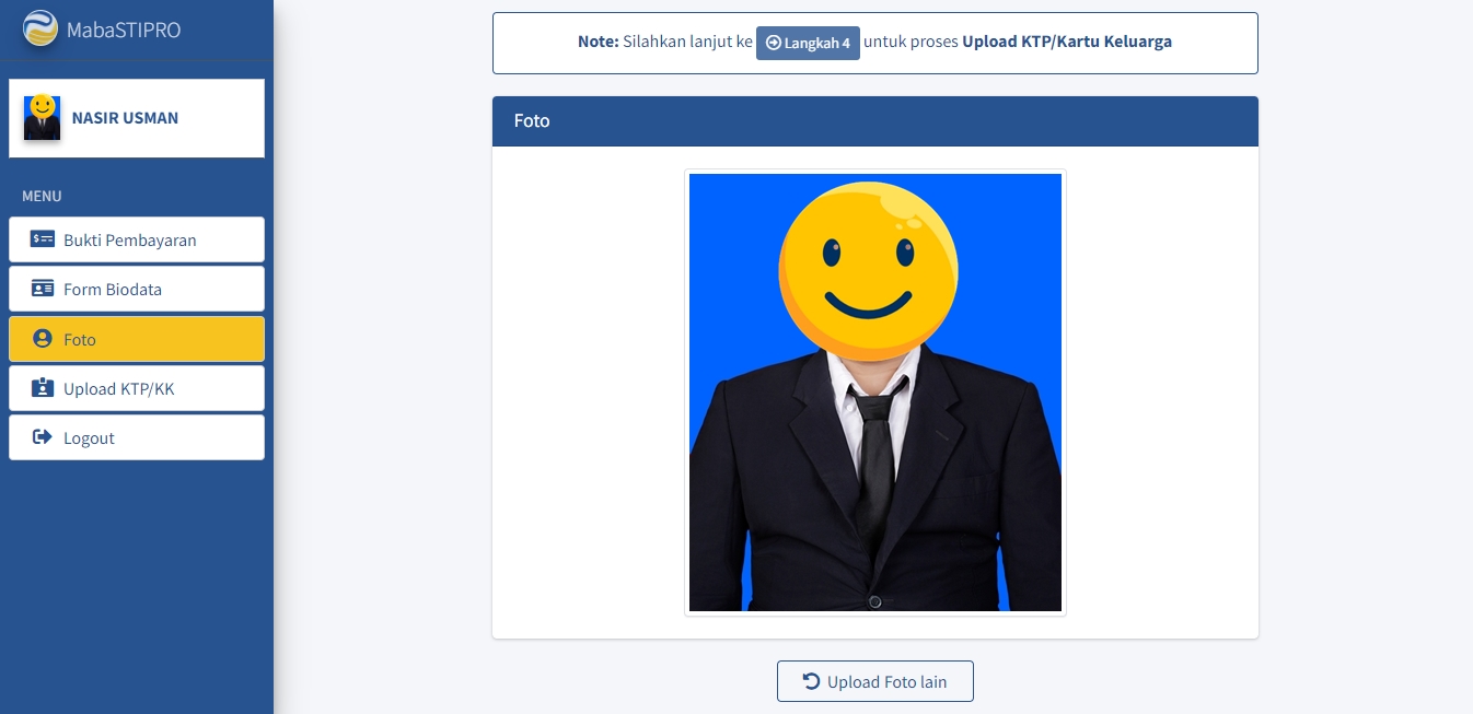 Berikut adalah tampilan setelah foto diri diunggah