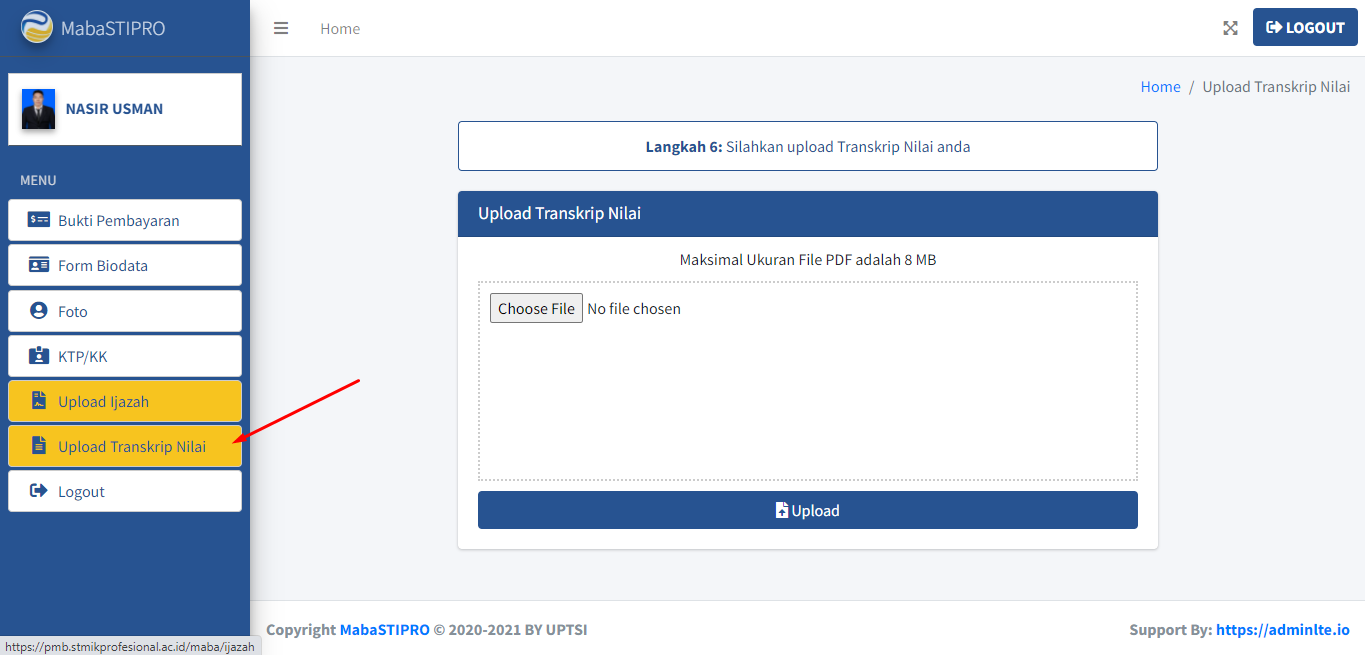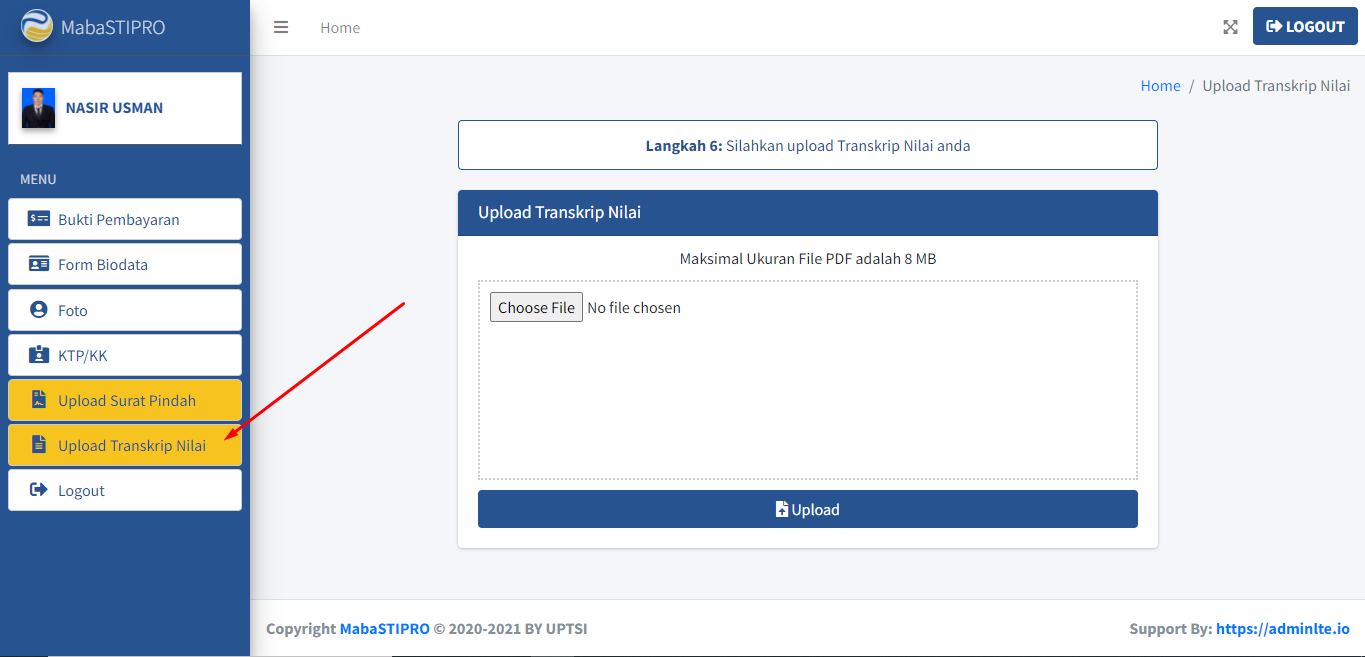 Setelah mengunggah Surat Keterangan Pindah dan Transkrip Nilai, lanjut ke Langkah 7
