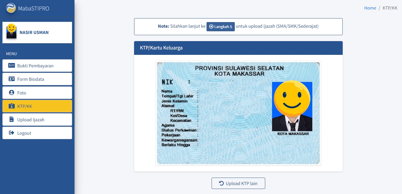 Setelah Anda mengunggah KTP atau Kartu Keluarga, maka tampilan akan diperbarui.