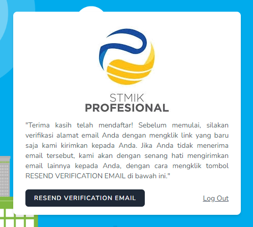Jika proses pendaftaran berhasil, maka Anda akan melihat halaman yang meminta untuk melakukan verifikasi alamat email.